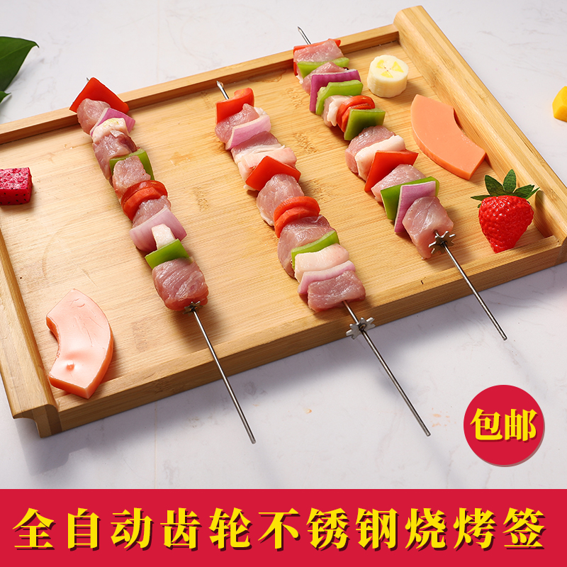 不锈钢扁签 烧烤羊肉串烤肉签子铁签烤串用具家用签字工具自动翻转烧烤签